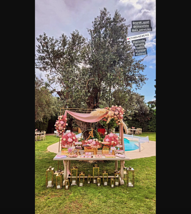 Ο Άκης Πετρετζίκης αλλά και κάποιοι συνεργάτες του στη βάπτιση, μας έδειξαν και κομμάτι από το candy bar, το μενού, τις μπομπονιέρες και τον στολισμό που ήταν φουλ του ροζ.