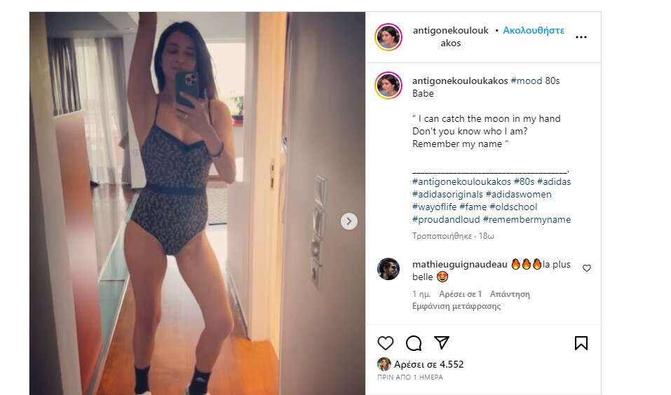 Συγκεκριμένα, η Αντιγόνη Κουλουκάκου έδειξε να απολαμβάνει την όψη του γυμνασμένου της σώματος στον καθρέφτη του σπιτιού της ενώ, όπως ήταν αναμενόμενο, δέχθηκε πλήθος κολακευτικών σχολίων από τους followers της.