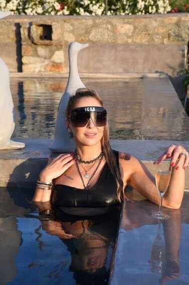 Σε μια πρόσφατη ανάρτησή της από τις διακοπές της στη Μύκονο, φορούσε ένα ολόσωμο μαύρο μαγιό που είχε ένα ιδιαίτερο κόψιμο, αναδεικνύοντας το γραμμωμένο σώμα της. Ταυτόχρονα, φορούσε μεγάλα μαύρα γυαλιά που έγραφαν τη λέξη “icon” (είδωλο) πάνω τους, δημιουργώντας ένα στιλιστικό statement.