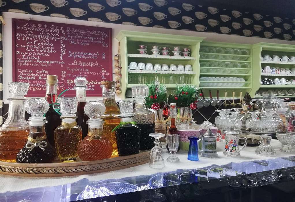 Ότι υπάρχει στο καφενείο είναι φτιαγμένο από τα χέρια και το μεράκι της κας Στεργίου. Το τσάι του βουνού της το φέρνουν φίλοι που το καλλιεργούν στα ορεινά της Φλώρινας, το φλαμούρι, η λουΐζα, η μέντα, το φασκόμηλο, ο δυόσμος καλλιεργούνται στο κτήμα της ενώ όπως μας εξομολογείται όλα τα είδη ζαχαροπλαστικής είναι φτιαγμένα από τα χέρια της. «Κάθε βδομάδα φτιάχνω τρία η τέσσερα διαφορετικά γλυκά που μπορεί κάποιος να γευτεί με το ρόφημα του».
