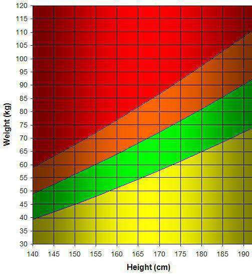 Επισήμανση: Το πράσινο χρώμα δείχνει το ιδανΙκό βάρος, το πορτοκαλί χρώμα δείχνει ότι είστε υπέρβαροι, το κόκκινο χρώμα ότι είστε παχύσαρκοι και το κίτρινο χρώμα ότι βρίσκεστε στο άλλο (επίσης ανθυγιεινό) άκρο του φάσματος και είστε λιποβαρείς.