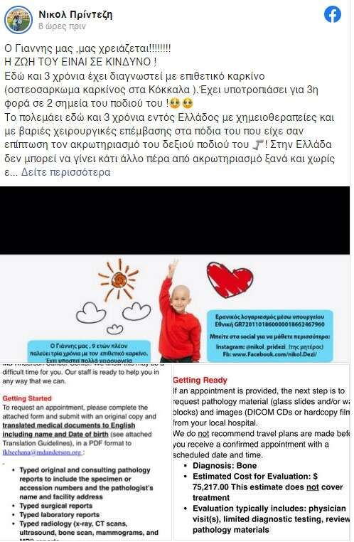 Ζητάμε τη βοήθειά σας, την πολύτιμη βοήθειά σας, να σώσουμε το παιδί μας!