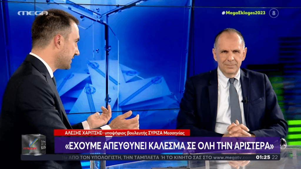 Την ώρα που η δημοσιογράφος ρωτούσε τον εκπρόσωπο του ΣΥΡΙΖΑ Αλέξη Χαρίτση αν το κόμμα του θα απευθύνει πρόσκληση συνεργασίας και στο ΚΚΕ, παρενέβη ο Γιώργος Γεραπετρίτης για να πει το εξής: “Για τον κ. Βαρουφάκη θα ρωτήσετε ή να ρωτήσω εγώ;”.