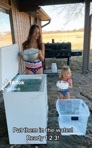 Η Kya Jeub, μητέρα δύο παιδιών, από την Οκλαχόμα των ΗΠΑ, δημοσίευσε ένα βίντεο στο TikTok της, όπου χρησιμοποιεί το όνομα Ice Queen, εξηγώντας γιατί της αρέσει να χαλαρώνει σε έναν κουβά με πάγο μαζί με τα παιδιά της Damon και Hermione.