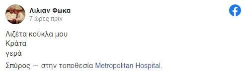 «Λιζέτα κούκλα μου, κράτα γερά. Σπύρος», αναφέρει χαρακτηριστικά η ανάρτηση.