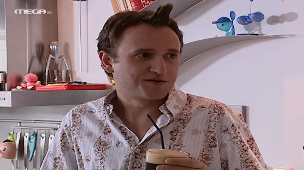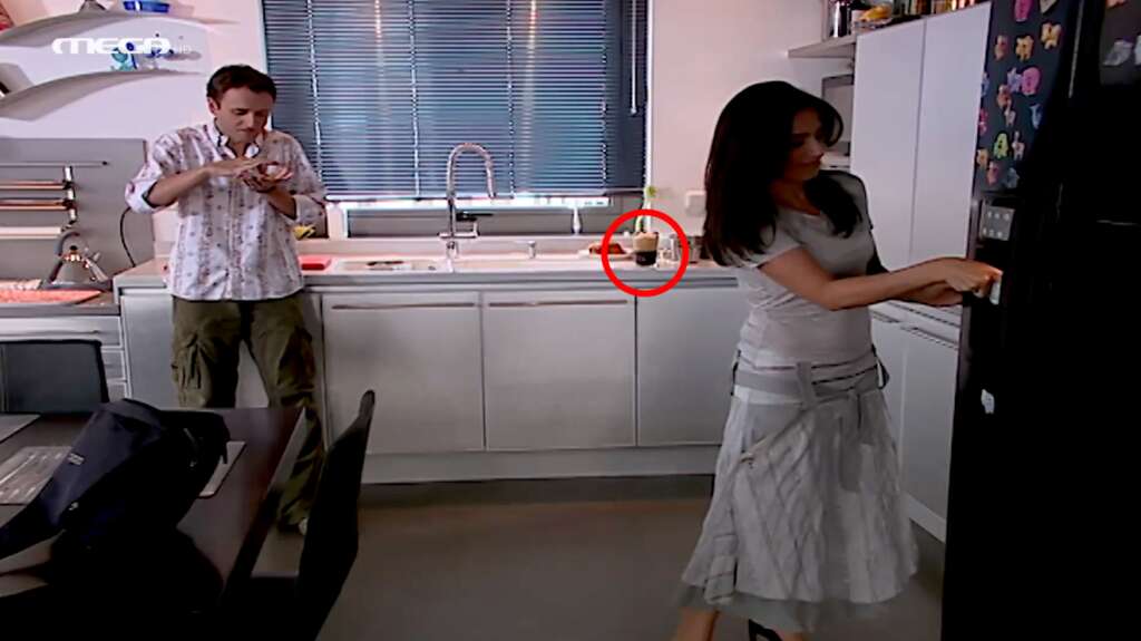Ο Φώτης παίρνει στα χέρια του τον φραπέ και στο κοντινό του πλάνο βλέπουμε τον καημένο τον καφέ να έχει ξαναχάσει τον αφρό του δημιουργώντας ένα τυπικό τηλεοπτικό σκηνογραφικό παράδοξο.