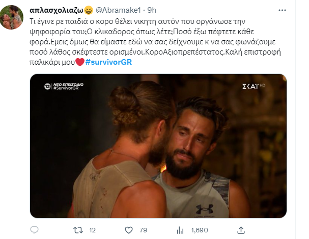 Παράλληλα, σε όλα αυτά που εκτυλίχθηκαν στο τελευταίο επεισόδιο, ήρθε να προστεθεί και ο Τριαντάφυλλος με την άποψή του για το αποτέλεσμα της ψηφοφορίας. Ο πρώην παίκτης του Survivor θεωρεί πως οι απόψεις του εισακούγονται από το τηλεοπτικό κοινό, ορίζοντας ποιος θα προχωρήσει στο παιχνίδι ενώ εξαιτίας του δικού του σχολιασμού πιστεύει πως κάποια επεισόδια κάνουν μεγαλύτερη τηλεθέαση συγκριτικά με άλλα.