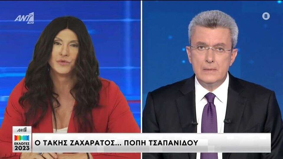 Ο Τάκης Ζαχαράτος μεταμφιέστηκε σε…Πόπη Τσαπανίδου σχολιάζοντας με ιδιαίτερο στυλ το exit poll στον Νίκο Χατζηνικαλάου.