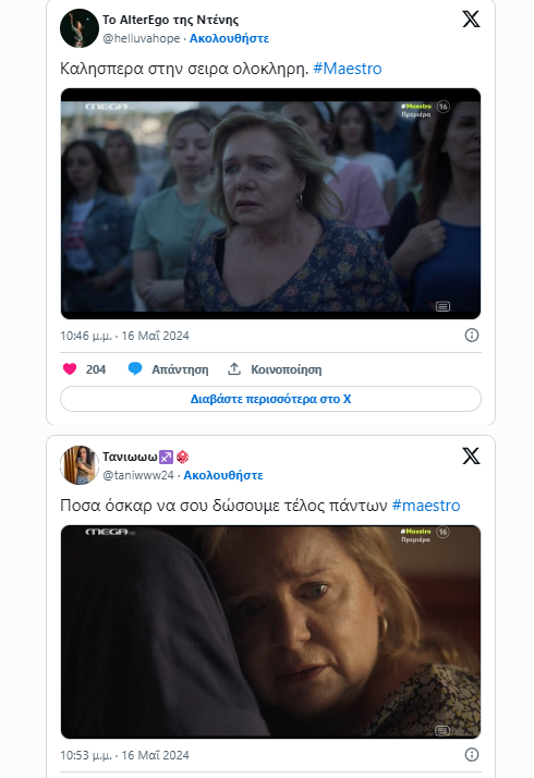 Το Maestro έκανε πρεμιέρα χθες, Πέμπτη, με τη δεύτερη σεζόν, καθηλώνοντας το τηλεοπτικό κοινό μπροστά στην τηλεόραση, με τις πρωταγωνίστριες να δίνουν ρεσιτάλ ερμηνείας και να αποθεώνονται στα social media.
