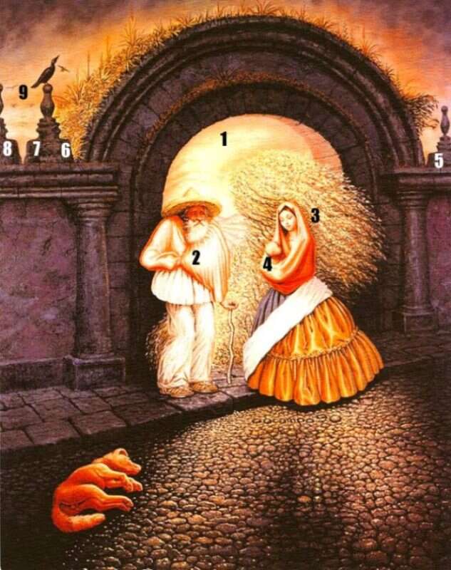 Ο ανθρώπινος εγκέφαλος έχει την τάση να παραλείπει πολλές φορές τις πληροφορίες που δέχεται από το εξωτερικό του περιβάλλον, κυρίως τις οπτικές. Το δευτερόλεπτο δεχόμαστε χιλιάδες πληροφορίες από το κοντινό περιβάλλον μας, ωστόσο τελικά απορροφούμε μόλις 7-9 πληροφορίες, και τις υπόλοιπες τις αγνοούμε. Ο Μεξικανός καλλιτέχνης, ουσιαστικά βασίστηκε πάνω σε αυτήν την ιδιότητα του εγκεφάλου ούτος ώστε να διεκπεραιώσει τη «σπαζοκεφαλιά» του, η οποία στηρίζεται σε οπτικές ψευδαισθήσεις μία εκ των οποίων είναι και η εικόνα που ακολουθεί.