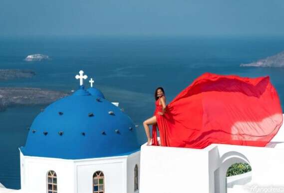 Το νησί ανάμεσα στους πολλούς τουρίστες, τράβηξε τα βλέμματα και των φωτογράφων της Flying Dress Photo, που πλέον κάθε καλοκαίρι βρίσκονται στη Σαντορίνη προκειμένου να φωτογραφήσουν την ίδια ακριβώς εικόνα. Τουρίστριες που ποζάρουν με φόντο τα ασβεστωμένα σπίτια και τους μπλε τρούλους, φορώντας πολυτελή σατέν φορέματα με εξαιρετικά μακριά ουρά.