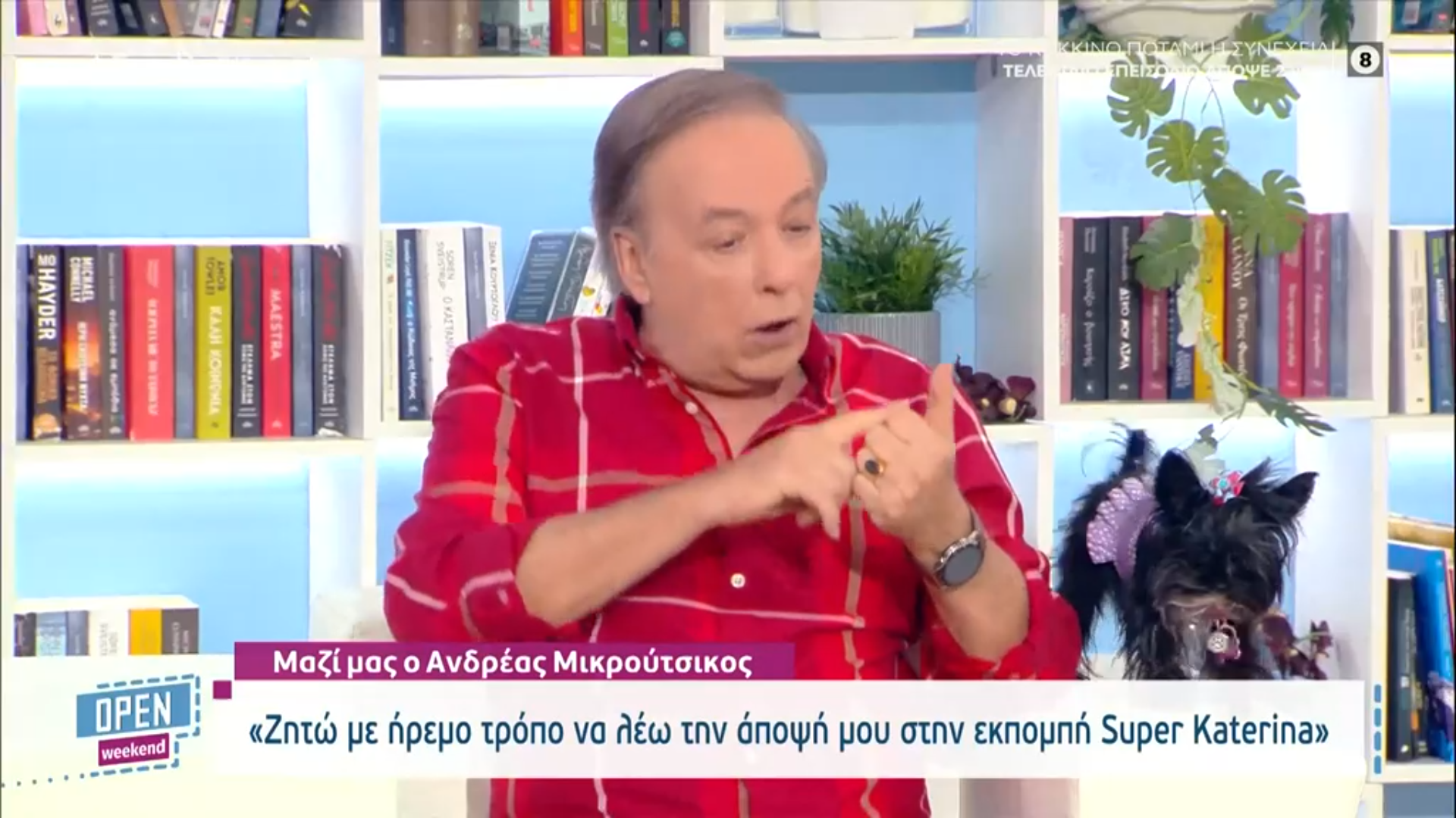 Ο Ανδρέας Μικρούτσικος βρέθηκε καλεσμένος στην Ελένη Τσολάκη και στην εκπομπή “Open Weekend”. Ο παρουσιαστής σε απόσπασμα της συνέντευξης του αναφέρθηκε στις εντάσεις που δημιουργούνται στην εκπομπή της Κατερίνας Καινούργιου αλλά και για τις διαφωνίες που έχει με την παρουσιάστρια.