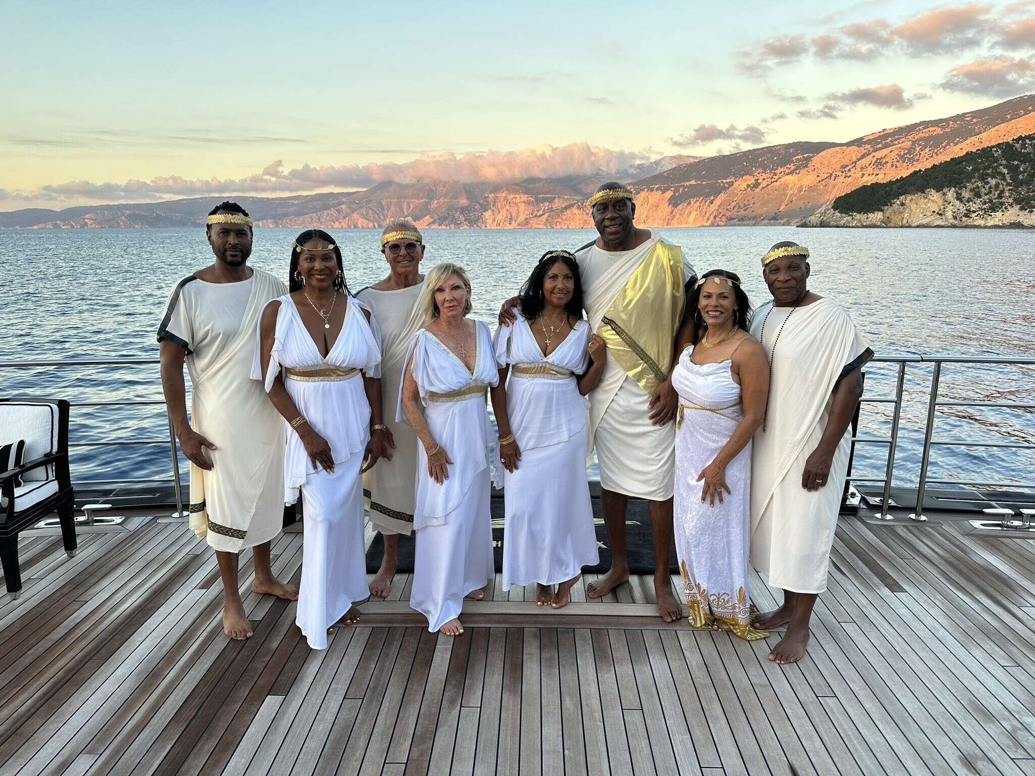 The Phoenix 2 crew put on a Greek god and goddess extravaganza tonight on the yacht! We had so much fun dressing up and dancing and Chef Daisy prepared an outstanding spread for us to enjoy! What a beautiful sunset tonight in Greece 🤩 pic.twitter.com/YRW0ieNqMP