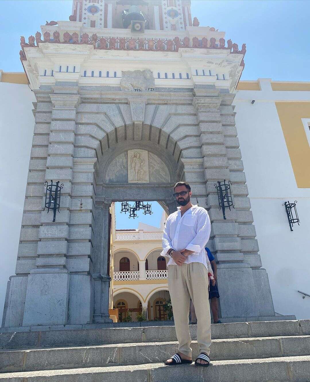 Ο Ηλίας Βρεττός είχε την ονομαστική του εορτή χθες, 20/7. Ο τραγουδιστής βρίσκεται στον Πάνορμο της Σύμης αυτές τις ημέρες και αποφάσισε να επισκεφθεί τον Ιερό Ναό του Αρχάγγελου Μιχαήλ του Πανορμίτη.