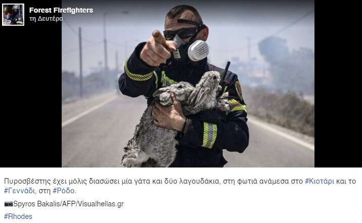 Η συγκινητική φωτογραφία του πυροσβέστη στην Ρόδο