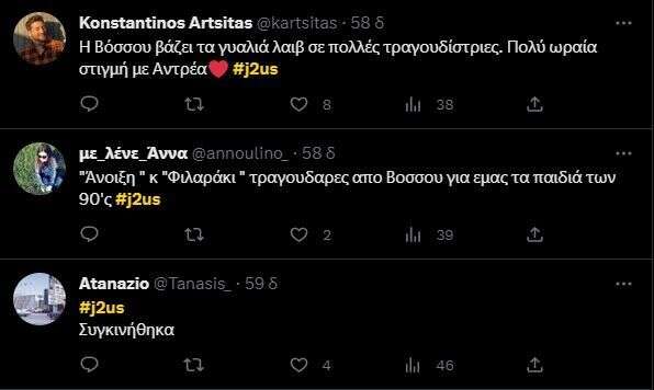 Το Twitter ξετρελάθηκε με τη Σοφία Βόσσου και τον Ανδρέα Μικρούτσικο στο J2US