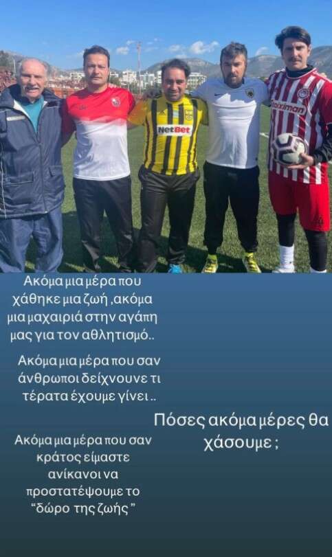 «Ακόμη μια μέρα που χάθηκε μια ζωή, ακόμη μια μαχαιριά στην αγάπη μας για τον αθλητισμό. Ακόμη μια μέρα που σαν άνθρωποι δείχνουμε τι τέρατα έχουμε γίνει. Ακόμη μια μέρα που σαν κράτος είμαστε ανίκανοι να προστατέψουμε το δώρο της ζωής. Πόσες ακόμα μέρες θα χάσουμε;», έγραψε ο Γιώργος Γεροντιδάκης.