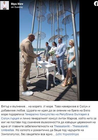 Το επόμενο βήμα στη σχέση του αποφάσισε να κάνει ένα ζευγάρι από τη Βουλγαρία και παντρεύτηκε με πολιτικό γάμο στη Θεσσαλονίκη και συγκεκριμένα στις Ομπρέλες της Νέας Παραλίας.