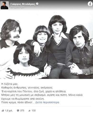 Η ανάρτηση του Γιώργου Νταλάρα για την Λιζέτα Νικολάου
