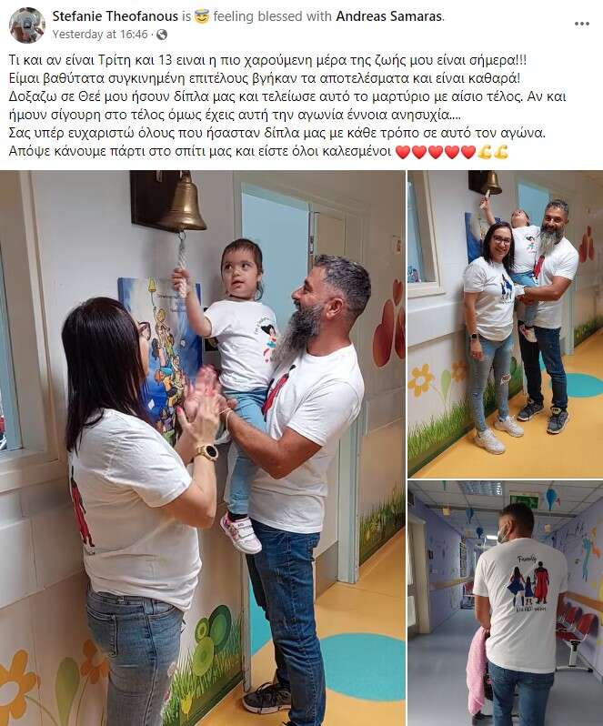Τα πιο όμορφα νέα μας έδωσε η μητέρα της μικρής μαχήτριας, Μοδέστια για την μάχη της με τον καρκίνο. Η μικρούλα μαχήτρια χτύπησε το καμπανάκι της νίκης στο νοσοκομείο και η κ. Στέφανη ανακοίνωσε τα χαρμόσυνα μέσα από τον λογαριασμό στο Facebook.