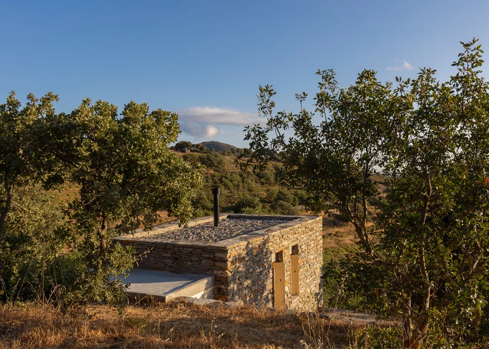 Πρόκειται για το πετρόχτιστο έργο με τίτλο «Εξοχικός κήπος με δωμάτιο στην Kέα», που υπογράφει ο αρχιτέκτονας Αλέξανδρος Φωτάκης και απέσπασε το Βραβείο Αρχιτεκτονικής ΕΙΑ 2022 στον διαγωνισμό του Ελληνικού Ινστιτούτου Αρχιτεκτονικής (ΕΙΑ).