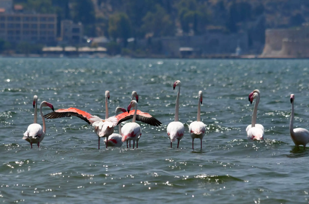 Ναύπλιο: Η εμφάνιση των φλαμίνγκο σε παραλία της πόλης