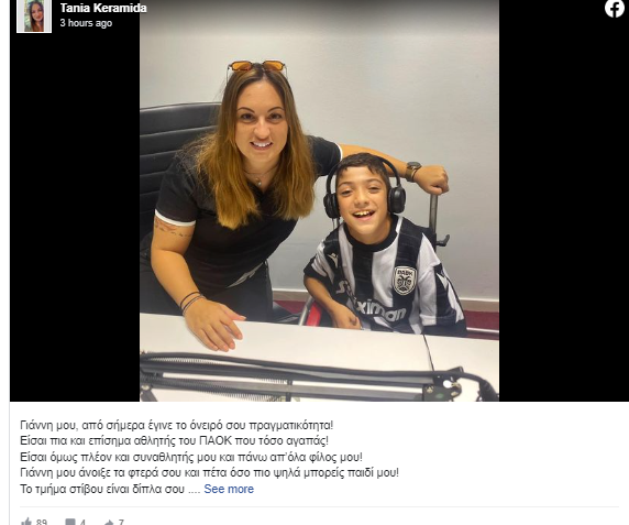 «Στην μεγάλη Οικογένεια του ΠΑΟΚ, θα ανήκει από εδώ και στο εξής, και επίσημα, ο νεαρός φίλος του Δικεφάλου, Γιάννης Παπαστεφανάκης, καθώς σήμερα (28/07) παρέλαβε το δελτίο του αθλητή, από την έφορο Στίβου του Συλλόγου, Τάνια Κεραμυδά.