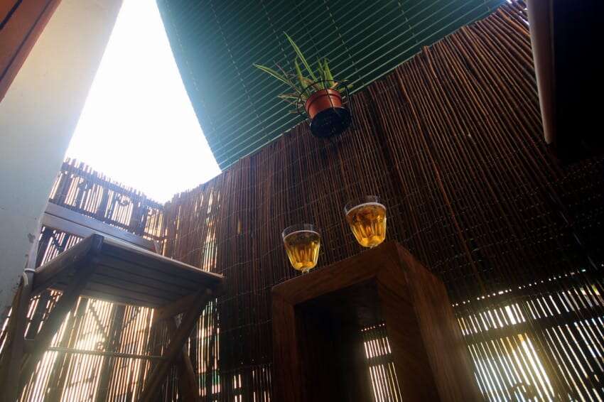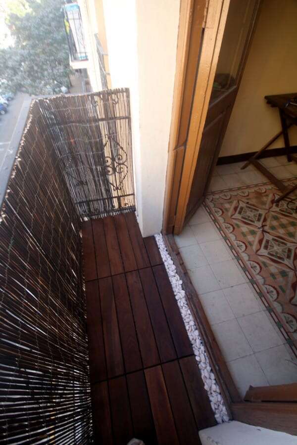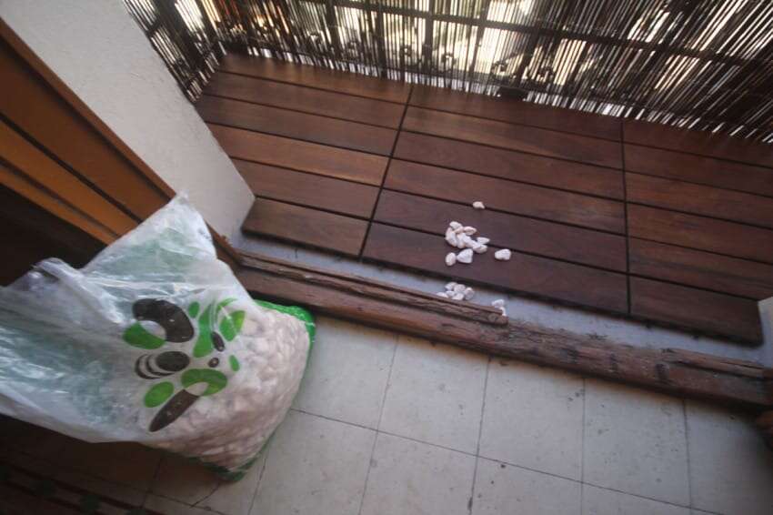 Οι περισσότεροι μπορεί να έβαζαν κάποια φυτά, αλλά αυτή η γυναίκα ήθελε να αλλάξει πλήρως. Με λιγότερο από 50 ευρώ, αγόρασε ξύλινες σανίδες, ψάθα, λευκά βότσαλα και περσίδες. Το πρώτο βήμα ήταν να εγκαταστήσει τις περσίδες. Έπειτα από μια ώρα δουλειάς, οι περσίδες ήταν έτοιμες. Σειρά είχε το πάτωμα. Έπρεπε να κόψει το μήκος των σανίδων για να ταιριάζουν στα μέτρα του μπαλκονιού. Μόλις τις έκοψε, τις τοποθέτησε «κουμπώνοντάς» τις. Έπειτα τοποθέτησε τη ψάθα γύρω από τα κάγκελα για περισσότερη ιδιωτικότητα. Στο κενό ανάμεσα στις σανίδες και τη μπαλκονόπορτα, τοποθέτησε λευκά βότσαλα. Ετσι λοιπόν έγινε ένα υπέροχο μέρος όπου μπορείς να κάθεσαι και να απολαμβάνεις την θέα.