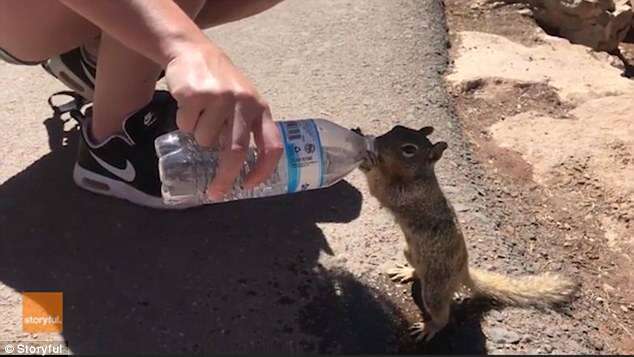 Ένα ολόκληρο μπουκάλι νερό ήπιε το σκιουράκι στο Εθνικό Πάρκο στην Αμερική