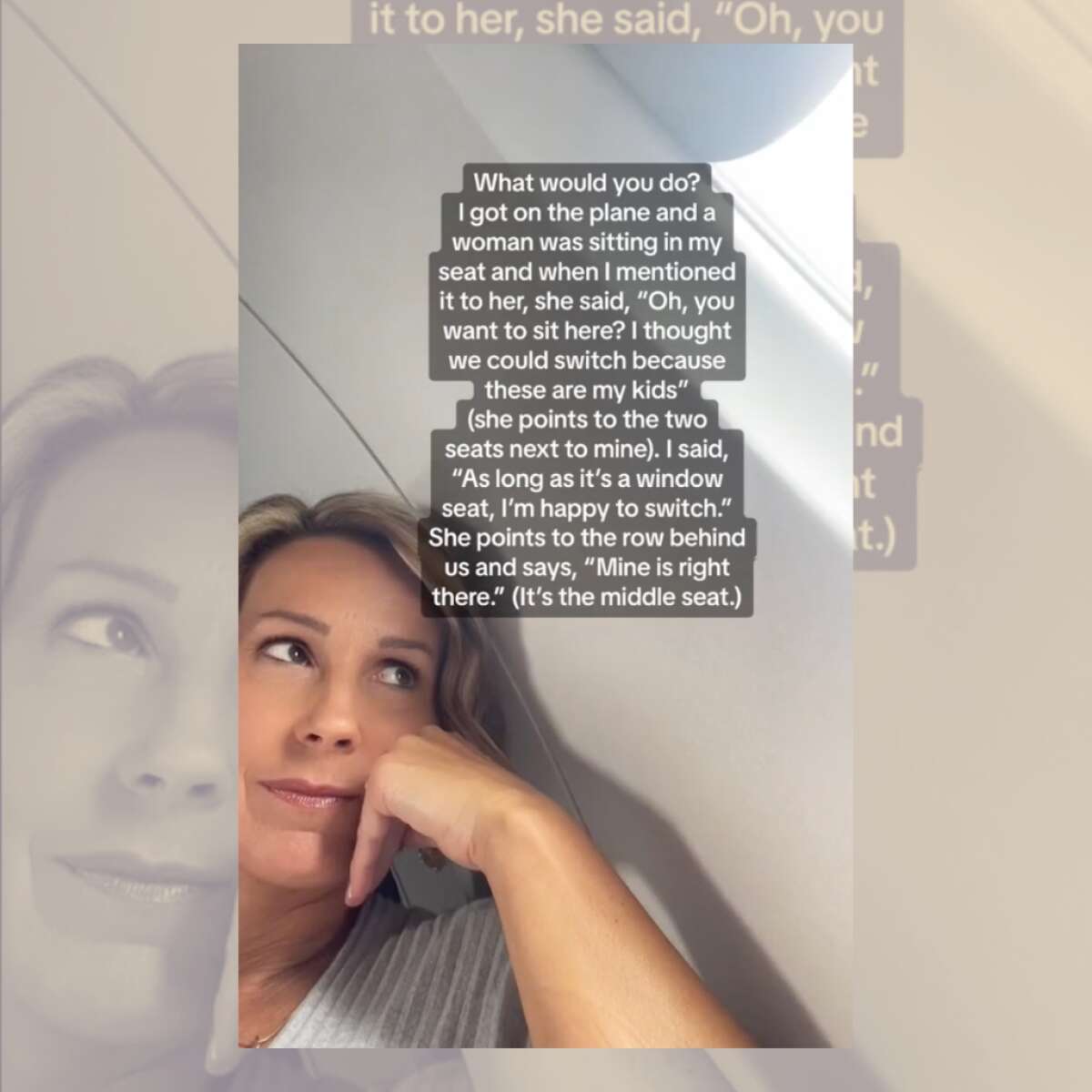 Η μητέρα είχε «κλείσει» τα εισιτήρια για εκείνη και τα δυο της παιδιά, αλλά δεν είχε προκαθορίσει τις θέσεις προτού επιβιβαστούν. Τότε ρώτησε μια επιβάτιδα, αν θα μπορούσαν να αλλάξουν θέση για να είναι κοντά στα παιδιά της ηλικίας 4 και 6 ετών.