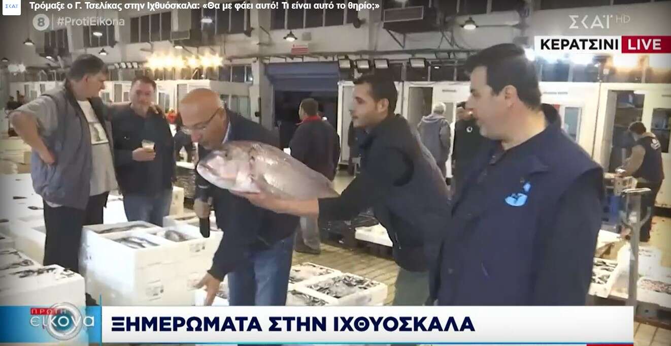 Ο Γιώργος Τσελίκας βρέθηκε σήμερα το πρωί στην ιχθυόσκαλα του Κερατσινίου προκειμένου να κάνει το ρεπορτάζ του για την εκπομπή «Πρώτη Εικόνα». Ο δημοσιογράφος ήρθε μάλιστα πρόσωπο με πρόσωπο με ένα τεράστιο φαγκρί και η εικόνα του έγινε αμέσως viral στα διαδίκτυο.