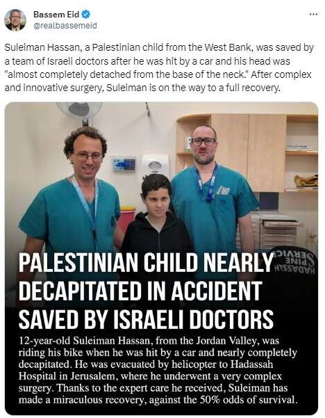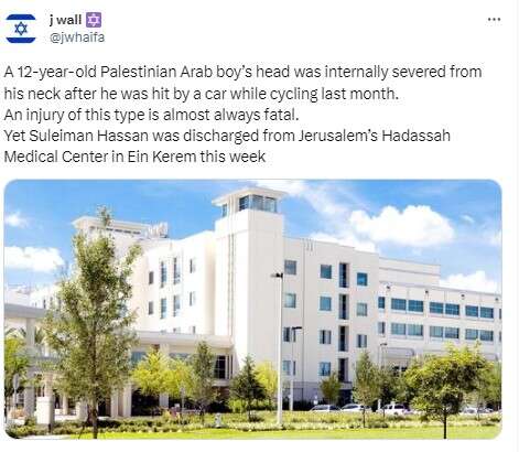 Ο Σουλεϊμάν οδηγούσε το ποδήλατό του όταν τον χτύπησε ένα αυτοκίνητο. Μεταφέρθηκε με αεροπλάνο στη Μονάδα Τραύματος του Hadassah Ein Kerem στην Ιερουσαλήμ και τμπήκε αμέσως σε χειρουργείο.