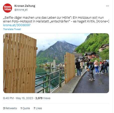 Αυστρία: Υψώθηκε φράχτης στο Χάλστατ σε ένδειξη διαμαρτυρίας για την κοσμοσυρροή