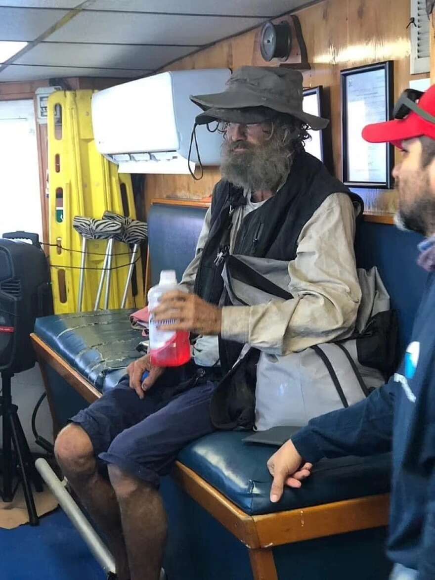 Πλάνα μετά τη διάσωσή του δείχνουν έναν αδύνατο άνδρα, με γκρίζα γενειάδα και τη σκυλίτσα του να κουνά την ουρά της. «Χρειάζομαι λίγη ξεκούραση και λίγο καλό φαγητό γιατί είμαι μόνος στη θάλασσα για πολύ καιρό», είπε ο ναυαγός.